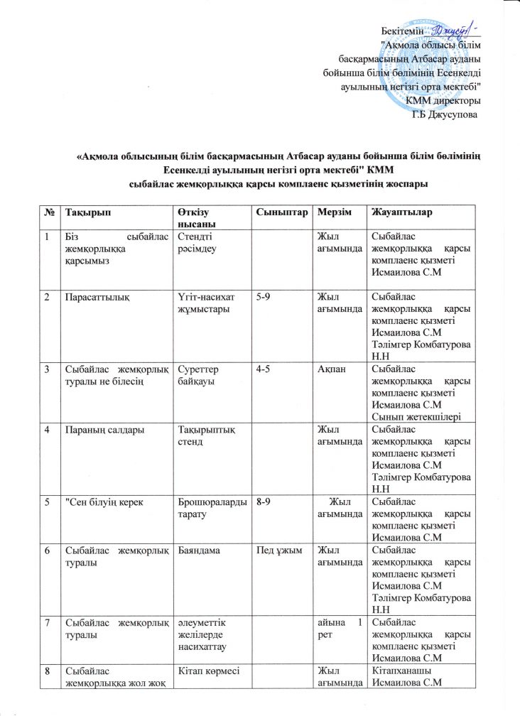 Сыбайлас жемқорлыққа қарсы қызметтің 2025-2026 оқу жылына арналған жоспары
