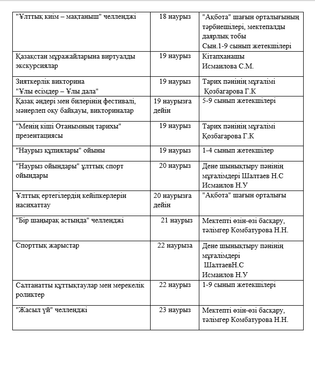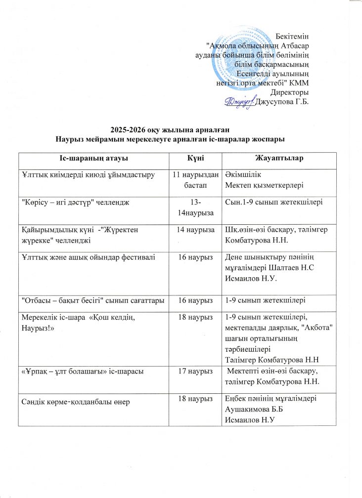 Наурызнамды мерекелеу жөніндегі 2025-2026 оқу жылына арналған іс-шаралар жоспары