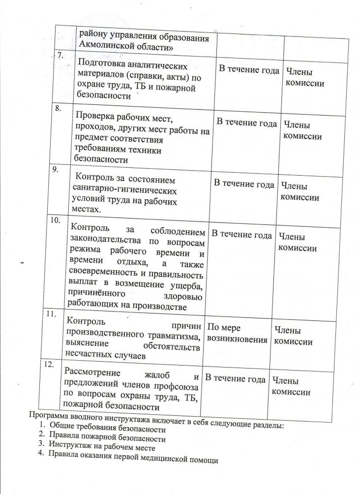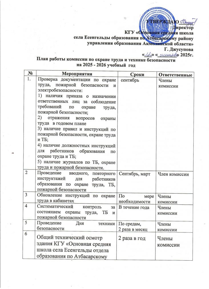 Еңбекті қорғау және қауіпсіздік техникасы жөніндегі комиссияның 2025-2026 оқу жылына арналған жұмыс жоспары