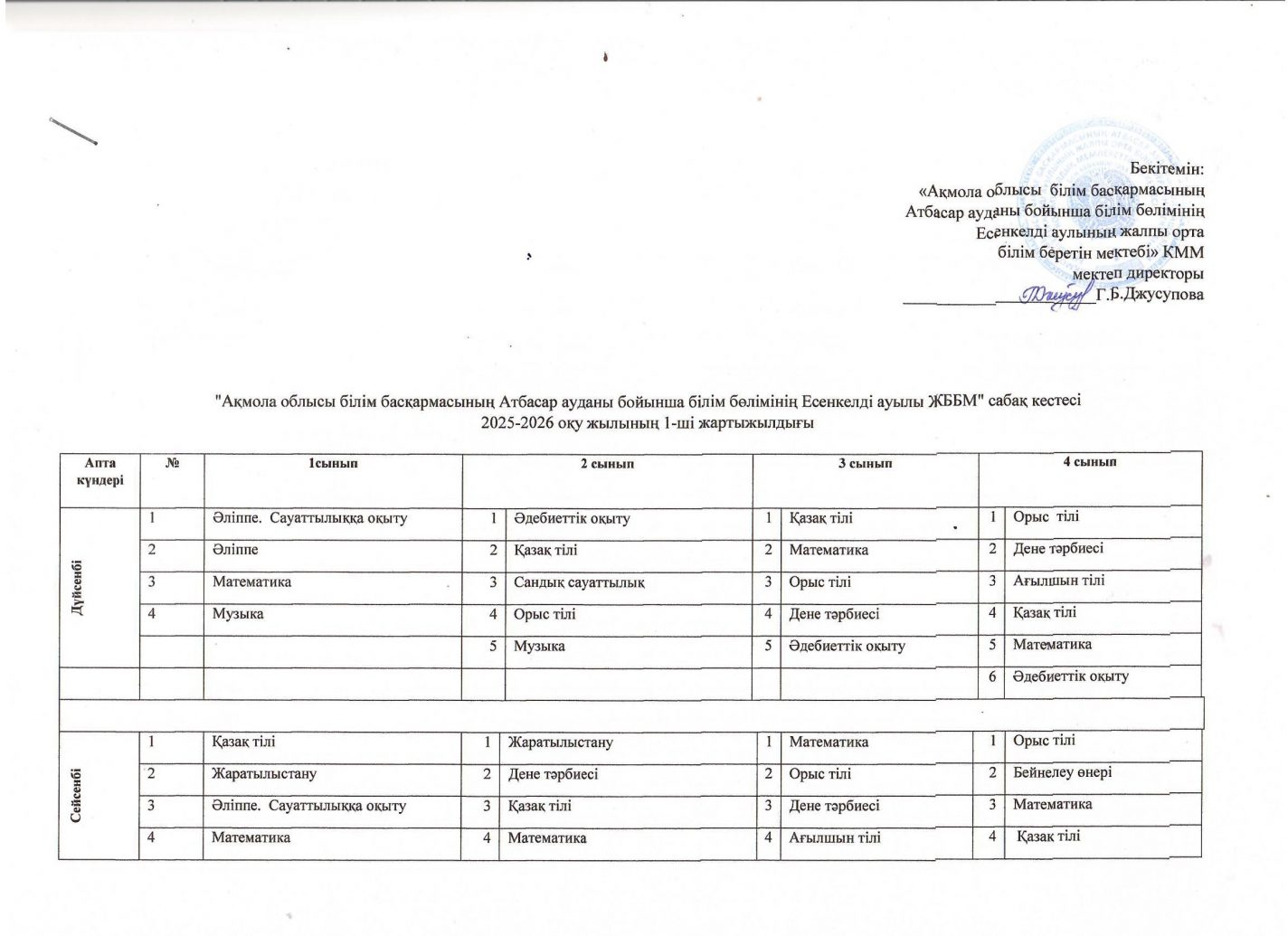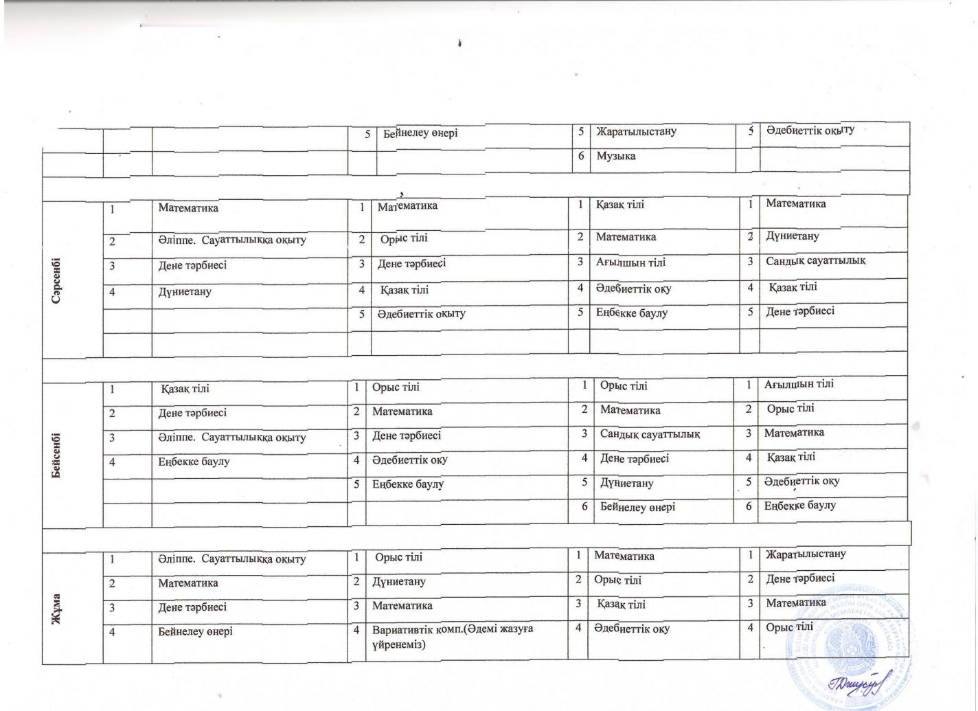 2024-2025 оқу жылының 1 жартыжылдығына бастауыш сыныптардың сабақ кестесі
