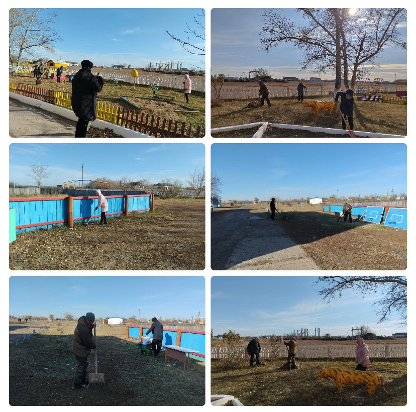 2025 жылғы 16 қазанда мектеп аумағын қоқыс пен құрғақ жапырақтардан тазарту жүргізілді